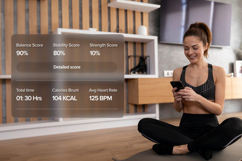 Performance score and dataAfter each practice, you’ll see clear, personalised scores on your balance, flexibility, and stability.